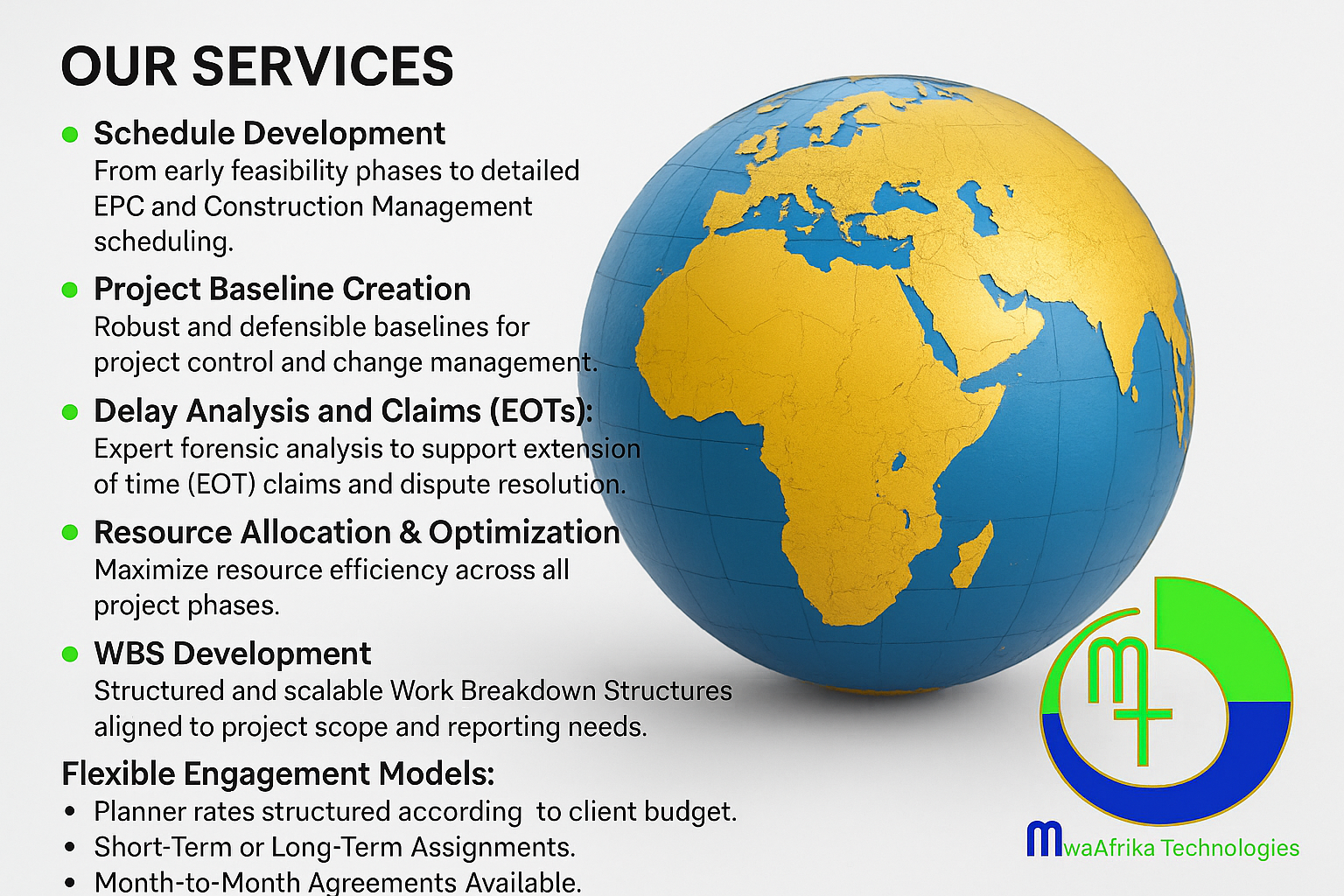 At MwaAfrika Technologies, we are passionate about nurturing talent in the engineering and construction sectors. Through practical, hands-on training using industry-standard tools like Primavera P6, We help aspiring professionals develop the skills needed to excel in fast-paced project environments. In just six weeks, you’ll gain the confidence and capabilities to stand out to top employers, land your first role, and launch a successful career—no prior experience needed, just determination.